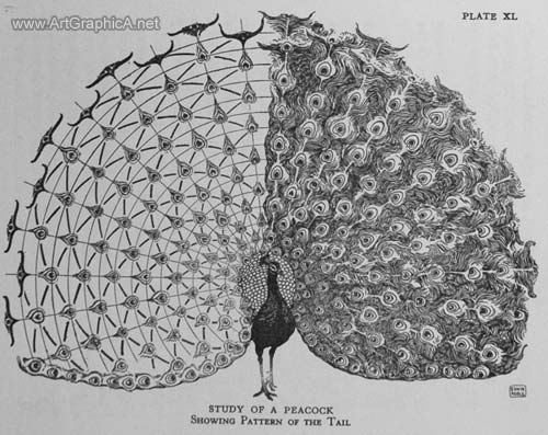 PLATE XL. STUDY OF A PEACOCK SHOWING PATTERN OF THE TAIL