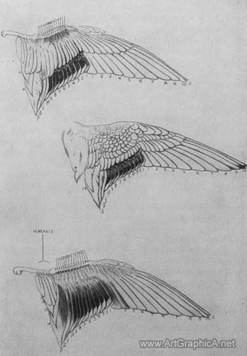These tracts vary slightly in size and shape in different birds, but the main arrangement is all that is necessary to the artist.
