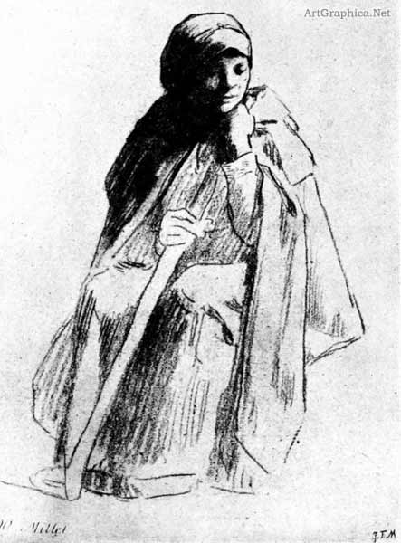 FIG. 58--A chalk drawing by J. F. Millet which shows his method clearly. He has been quick to seize the forms which emerge from the heavy, hanging garments. The drawing has a rhythm of its own.