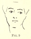 I have not seen it advanced elsewhere, but personally I have noticed this peculiarity in almost all faces-and even slightly marked in the faces of children : that the eyes run down either on the right or the left and that the mouth runs up towards the lower eye.