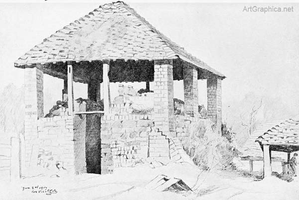 Illus. XLVIII. Sketch by the author. This group of buildings is interesting for its many types, including composite forms of the Pyramid and Pavilion.